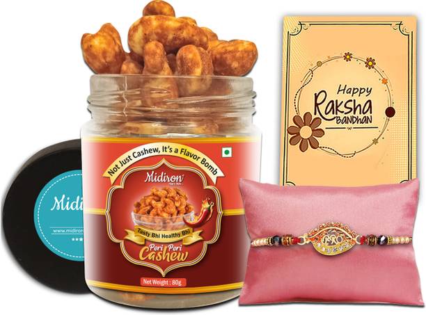 Midiron Rakhi Gift Set Flavored Cashews – rakhi combo, dry fruit gift, festive use, brother gift, edible