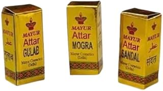 Mogra, Gulab & Sandal Attar Set (Pack of 3): Attar set featuring floral and woody fragrances for personal and spiritual use.