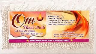 Om Phool Batti Twisted White Double Wicks (Pack of 4): Double twisted white cotton wicks for stronger and longer flame.
